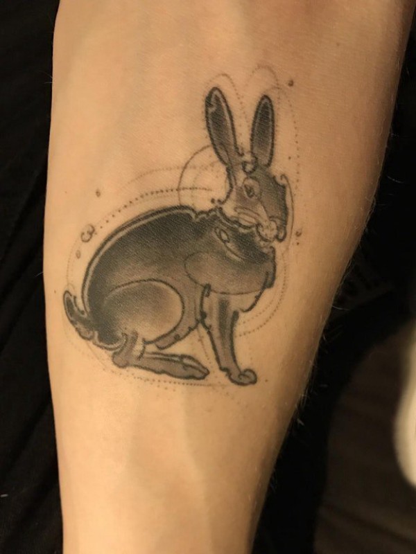 垂耳兔子纹身 男生手臂上灰色的兔子纹身图片