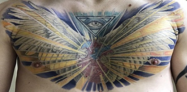 天使翅膀纹身图案 男生胸上天使翅膀和几何纹身图片