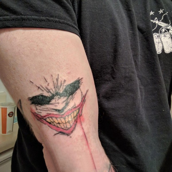纹身表情 男生手臂上彩色的面部表情纹身图片