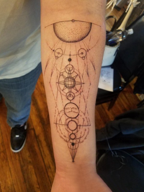 几何元素纹身 男生手臂上黑色的星系纹身图片