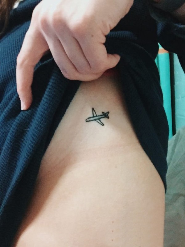 飞机纹身 女生侧腰上黑色的飞机纹身图片