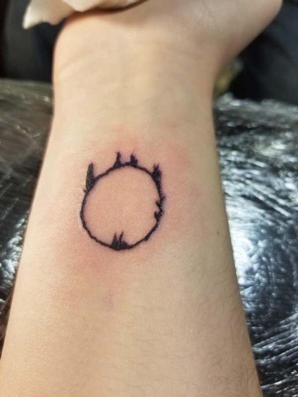 纹身圆形 女生手腕上黑色的圆形纹身图片
