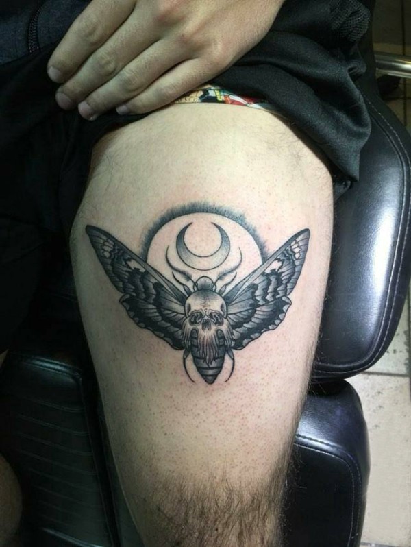 纹身虫 男生大腿上昆虫和骷髅纹身图片
