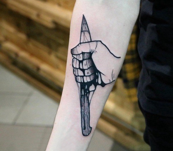 纹身黑色 男生手臂上匕首和手部纹身图片
