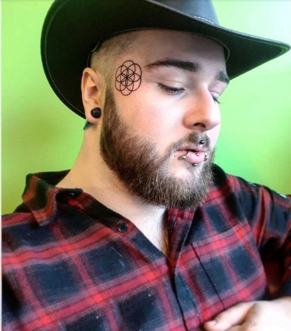 纹身圆形 男生脸部黑色的圆形纹身图片