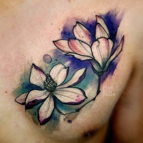 纹身胸部男 男生胸部彩色的玉兰花纹身图片