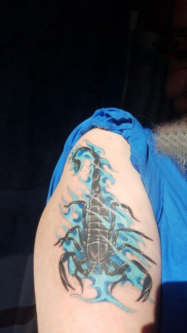 蝎子图片纹身 女生大臂上彩色的蝎子纹身图片