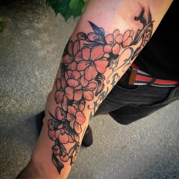 樱花花瓣纹身 多款小清新文艺纹身彩色樱花纹身图案