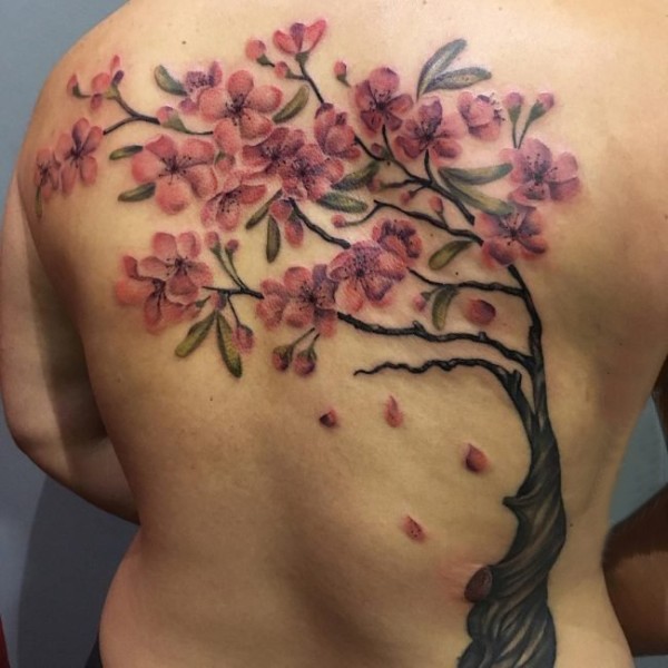 樱花花瓣纹身 多款小清新文艺纹身彩色樱花纹身图案