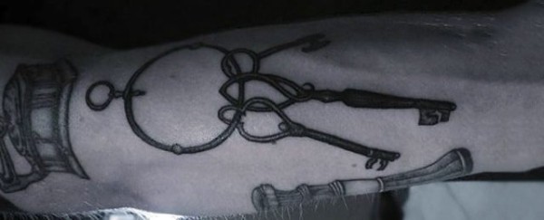 情侣恋人之间代表紧密一起的钥匙和锁头纹身图案