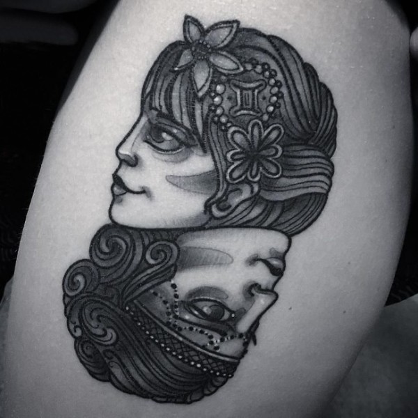 能面万媚纹身手稿_52张日式能剧面具纹身手稿图案素材欣赏