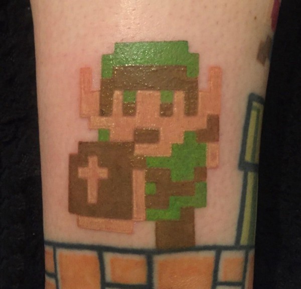 像素风格纹身 男生手臂上彩色的卡通人物纹身图片