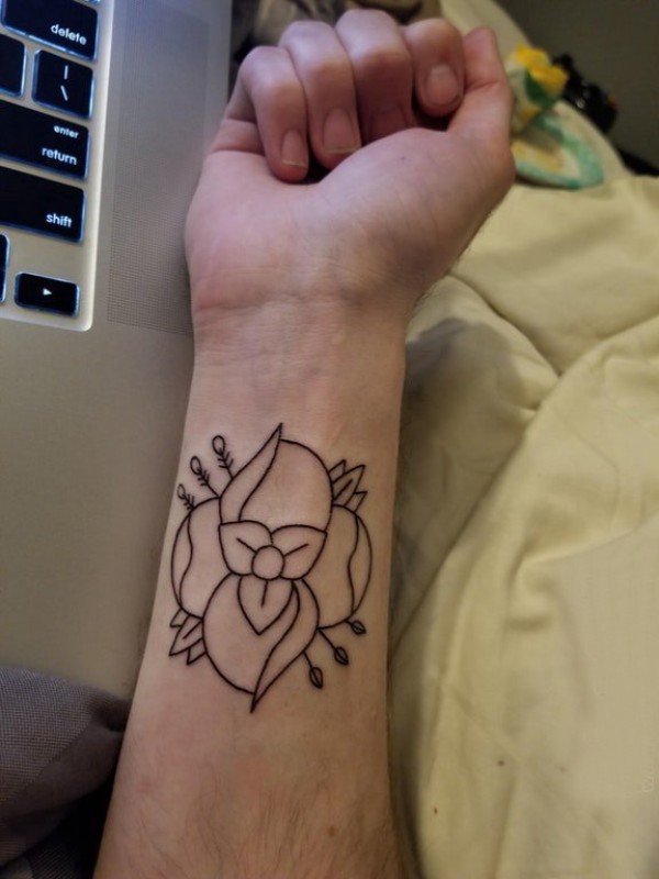 线条纹身小图 男生手臂上黑色的花朵纹身图片