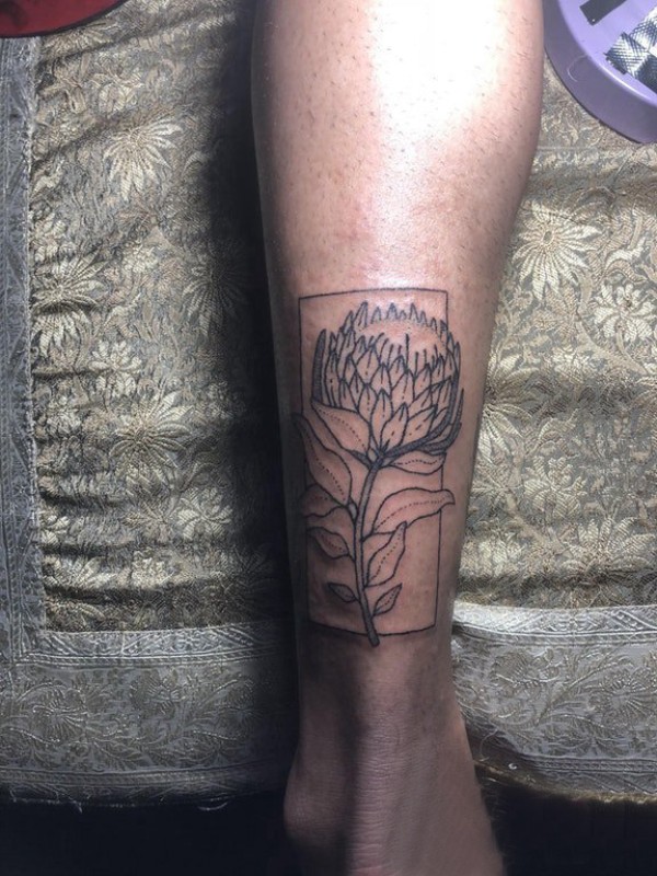 小腿对称纹身 男生小腿上几何和花朵纹身图片