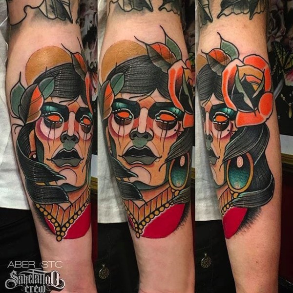 花朵纹身图案-20张身体各个部位传统彩绘纹身图案