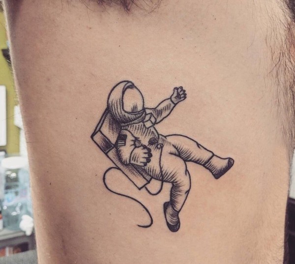 宇航员纹身图案 男生侧腰上极简的宇航员纹身图片
