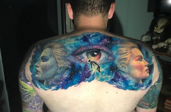 原宿星空纹身 男生后背上彩绘的原宿星空纹身图片