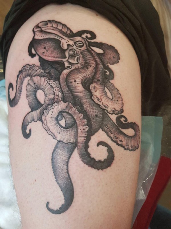 黑色章鱼纹身 女生大腿上黑色的章鱼纹身图片
