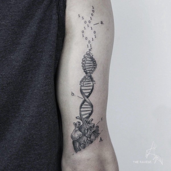 机械心脏纹身图案 男生手臂上DNA和心脏纹身图片