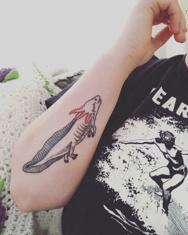 百乐动物纹身 女生手臂上彩色的大鲵纹身图片
