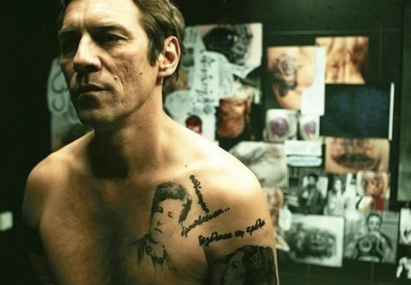 《纹身师》电影里的人物胸上的人物肖像纹身图片