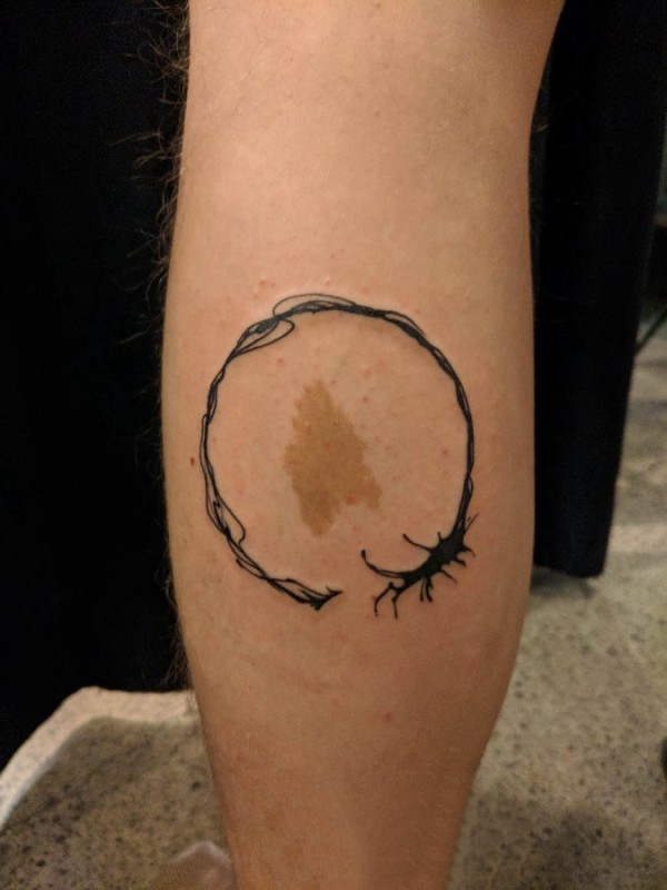 欧美小腿纹身 女生小腿上黑色的圆形纹身图片
