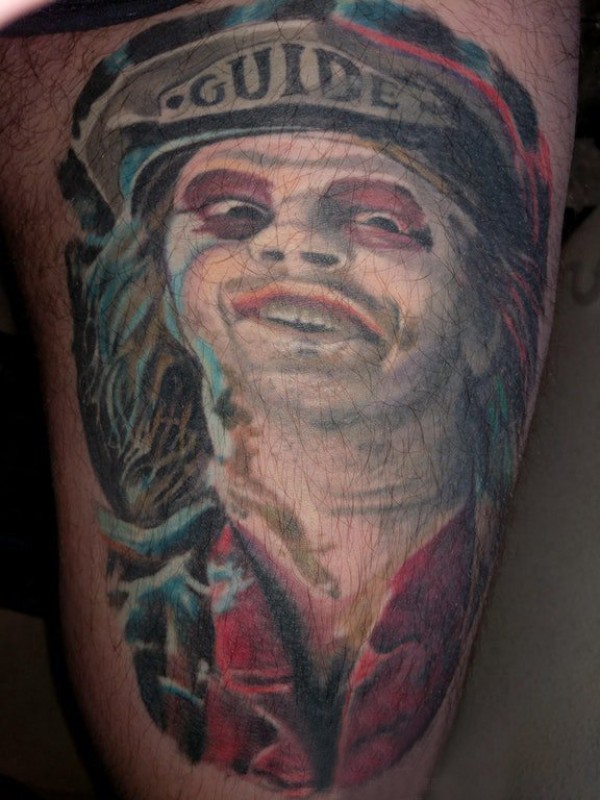 大腿 纹身图 男生大腿上恐怖的人物肖像纹身图片