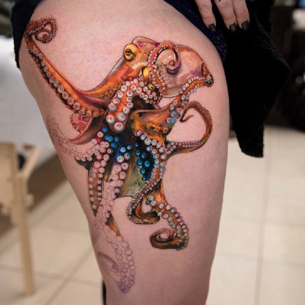 章鱼纹身图案 女生大腿上个性的章鱼纹身图片
