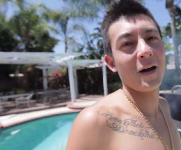 中国纹身明星 陈冠希锁骨上黑色的英文字母纹身图片