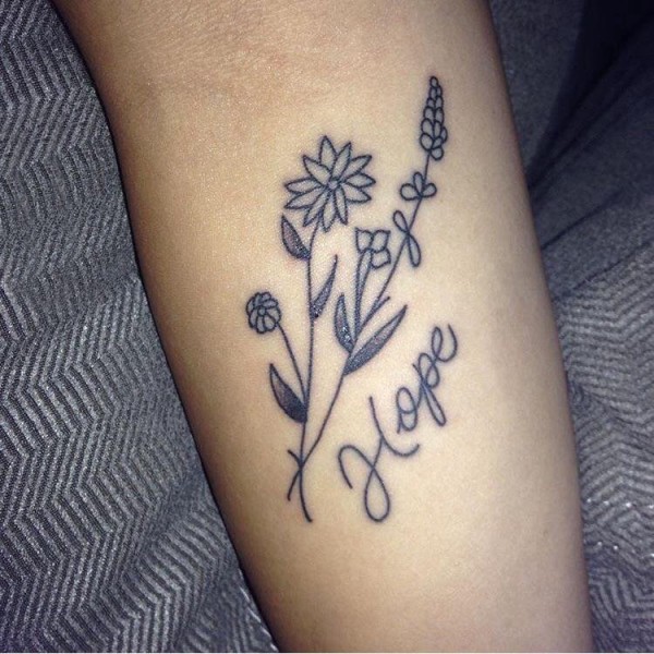 小清新植物纹身 女生手臂上英文和花朵纹身图片