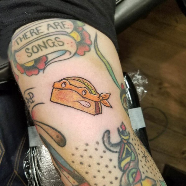 食物纹身 男生手臂上彩色的三明治纹身图片