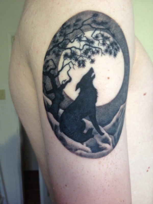 狼和花纹身图案 男生大臂上大树和狼纹身图片