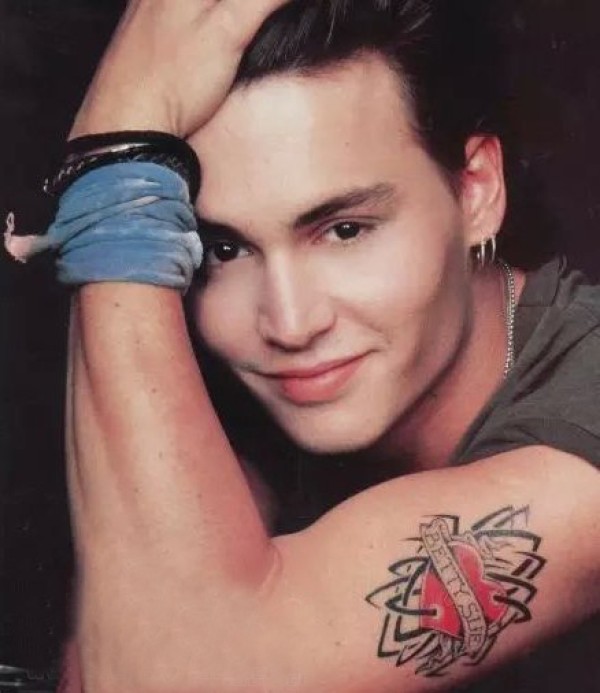 美国纹身明星 Johnny Depp手臂上彩绘的心形纹身图片