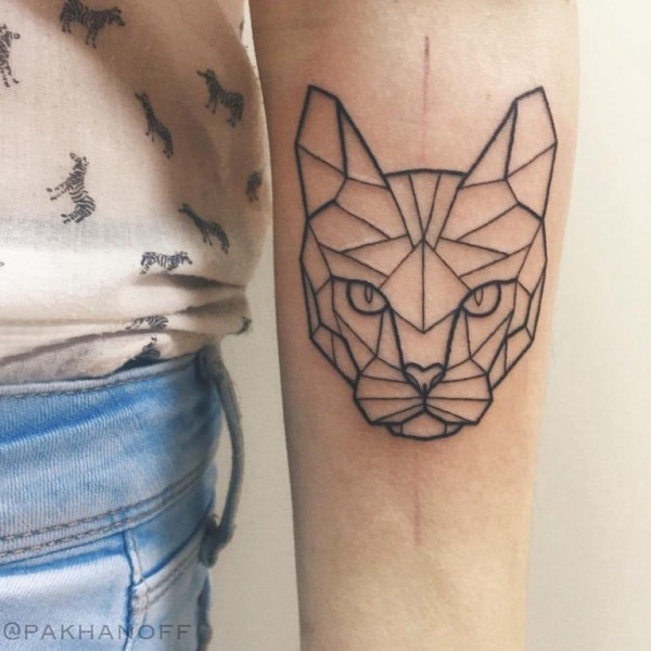 几何动物纹身 男生手臂上黑色的豹子纹身图片