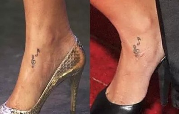 蕾哈娜的纹身 明星蕾哈娜脚上黑色的音符纹身图片