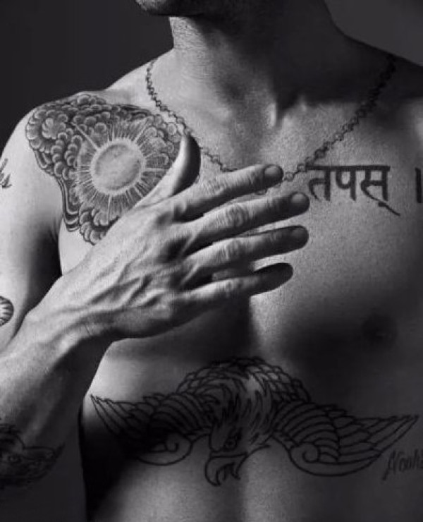 国际纹身明星 Adam Levine身上黑色的极简纹身图片
