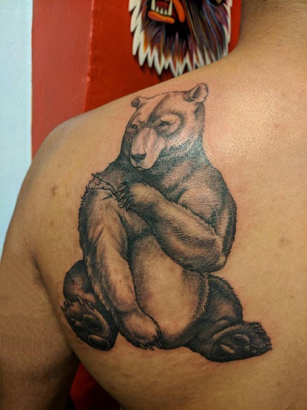 胖熊纹身 男生后背上黑色的熊纹身图片