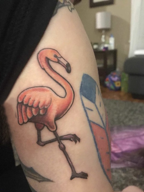 百乐动物纹身 女生大腿上彩色的火烈鸟纹身图片