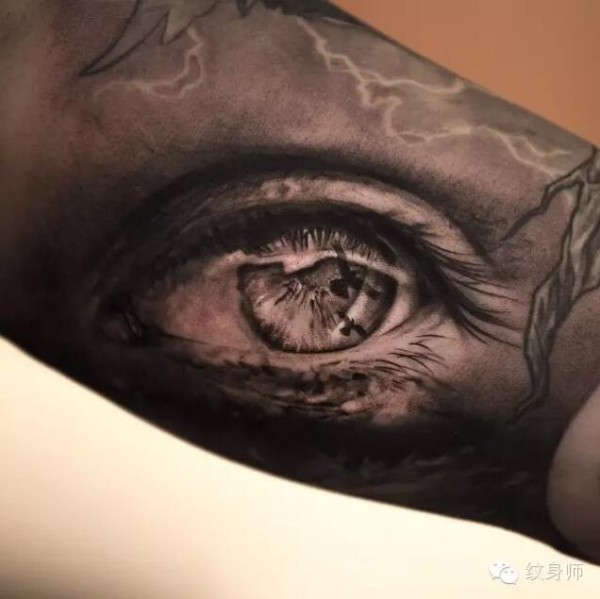 纹身眼睛纹身图案 男性手臂上穿透灵魂的黑色素描纹身眼睛纹身图案