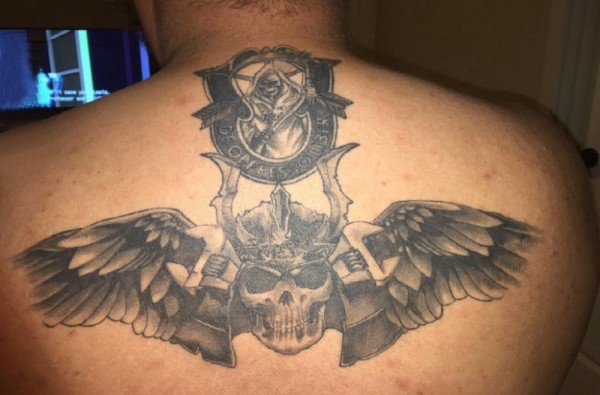 骷髅纹身 男生后背上骷髅和翅膀纹身图片