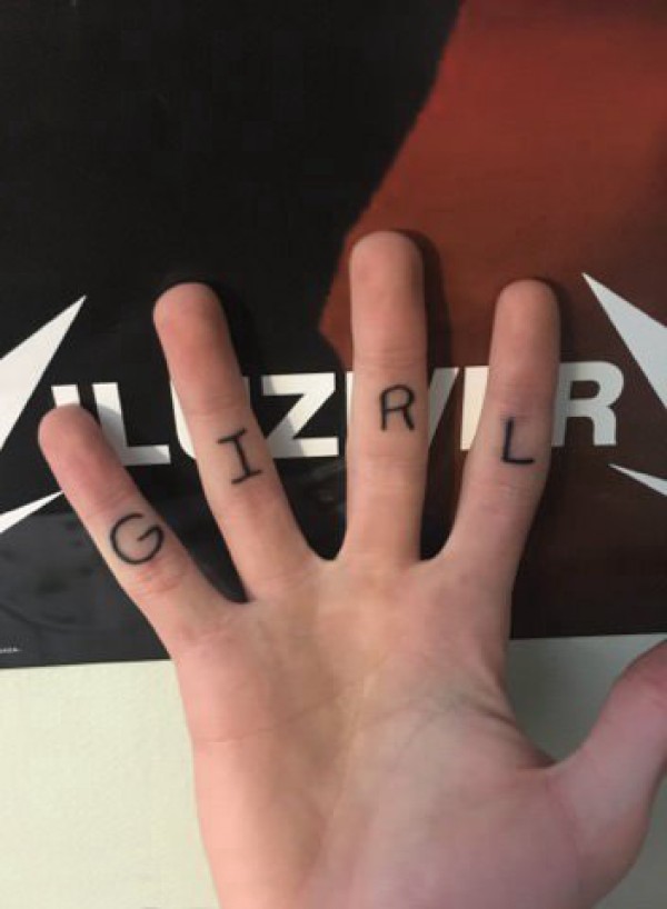 指头纹身小图案字母 女生手指上黑色的字母纹身图片