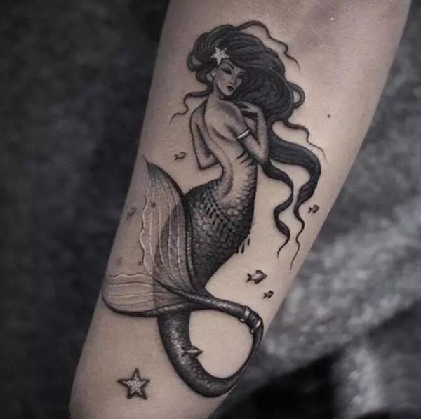 纹身美人鱼 魅力动人的美人鱼纹身图案