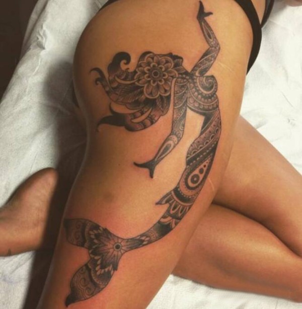 纹身美人鱼 魅力动人的美人鱼纹身图案