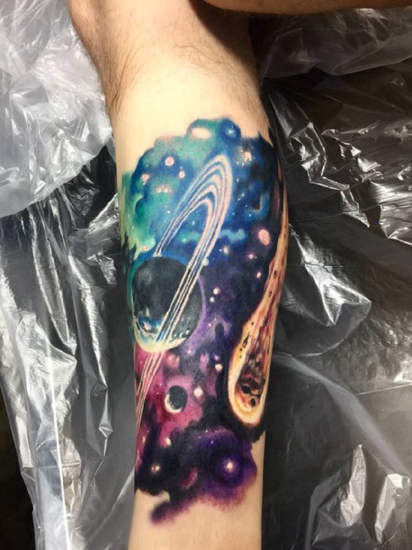 小宇宙纹身 男生小腿上宇宙和星球纹身图片