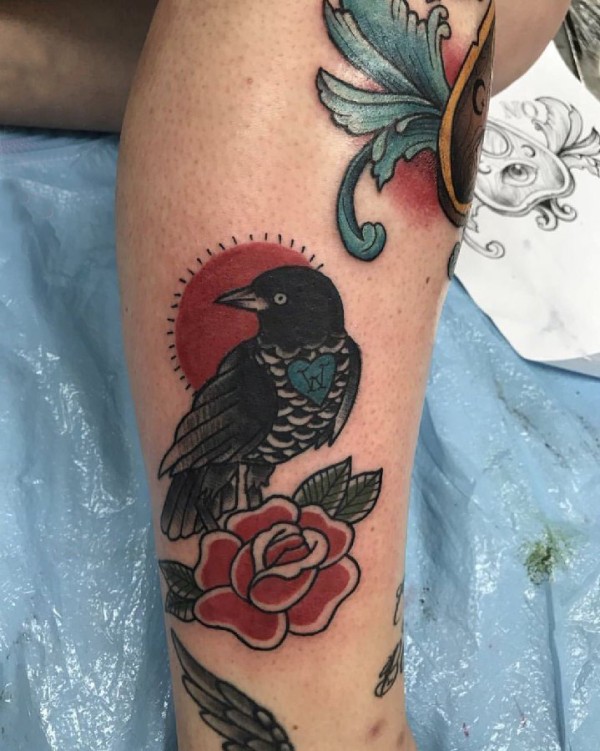 纹身图案花朵 女生小腿上鸟和花朵纹身图片