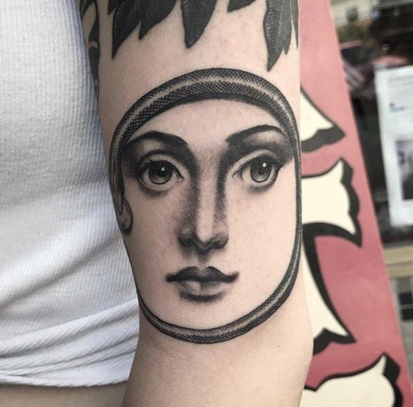 简易纹身素描 女生手臂上黑灰的人物肖像纹身图片