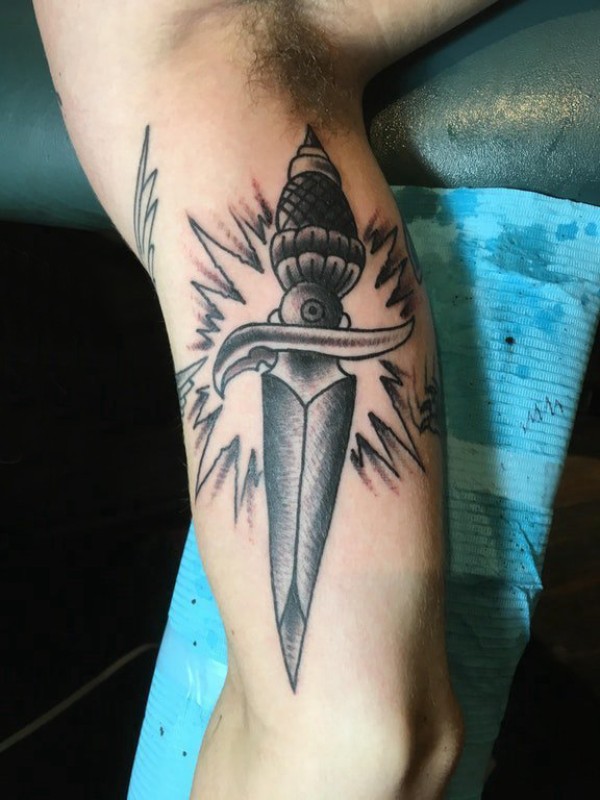 匕首纹身图案 男生大臂上锋利的匕首纹身图片