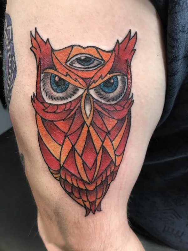 纹身猫头鹰 男生手臂上彩绘的猫头鹰纹身图片