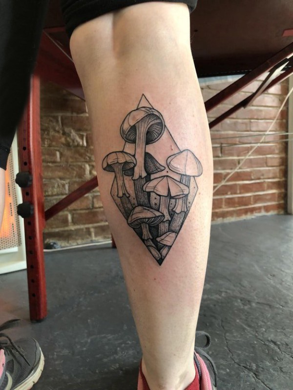 植物纹身 男生小腿上菱形和蘑菇纹身图片