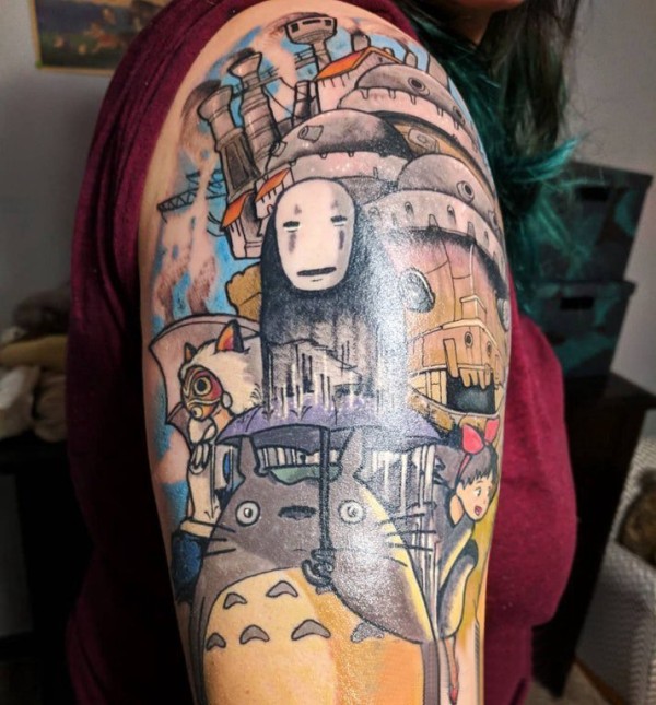 双大臂纹身 女生大臂上彩色的动漫人物纹身图片